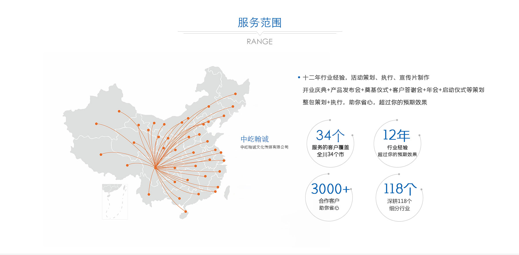 歷經(jīng)多年深耕,公司已形成 “公關(guān)活動(dòng)、展覽展示、品牌戰(zhàn)略服務(wù)、影視制作” 四大核心業(yè)務(wù)板塊。從創(chuàng)意策劃到落地執(zhí)行,從品牌塑造到視覺(jué)呈現(xiàn),從活動(dòng)運(yùn)營(yíng)到影像記錄,中屹翰誠(chéng)始終以專業(yè)視角與創(chuàng)新理念,滿足客戶多元化需求。憑借出色的服務(wù)品質(zhì)與專業(yè)能力,公司在市場(chǎng)中穩(wěn)步前行,服務(wù)版圖已拓展至政府、金融、媒體、演藝、建筑等 118 個(gè)細(xì)分行業(yè),與超 3000 家客戶建立深度合作關(guān)系,以實(shí)力贏得廣泛認(rèn)可與信賴。